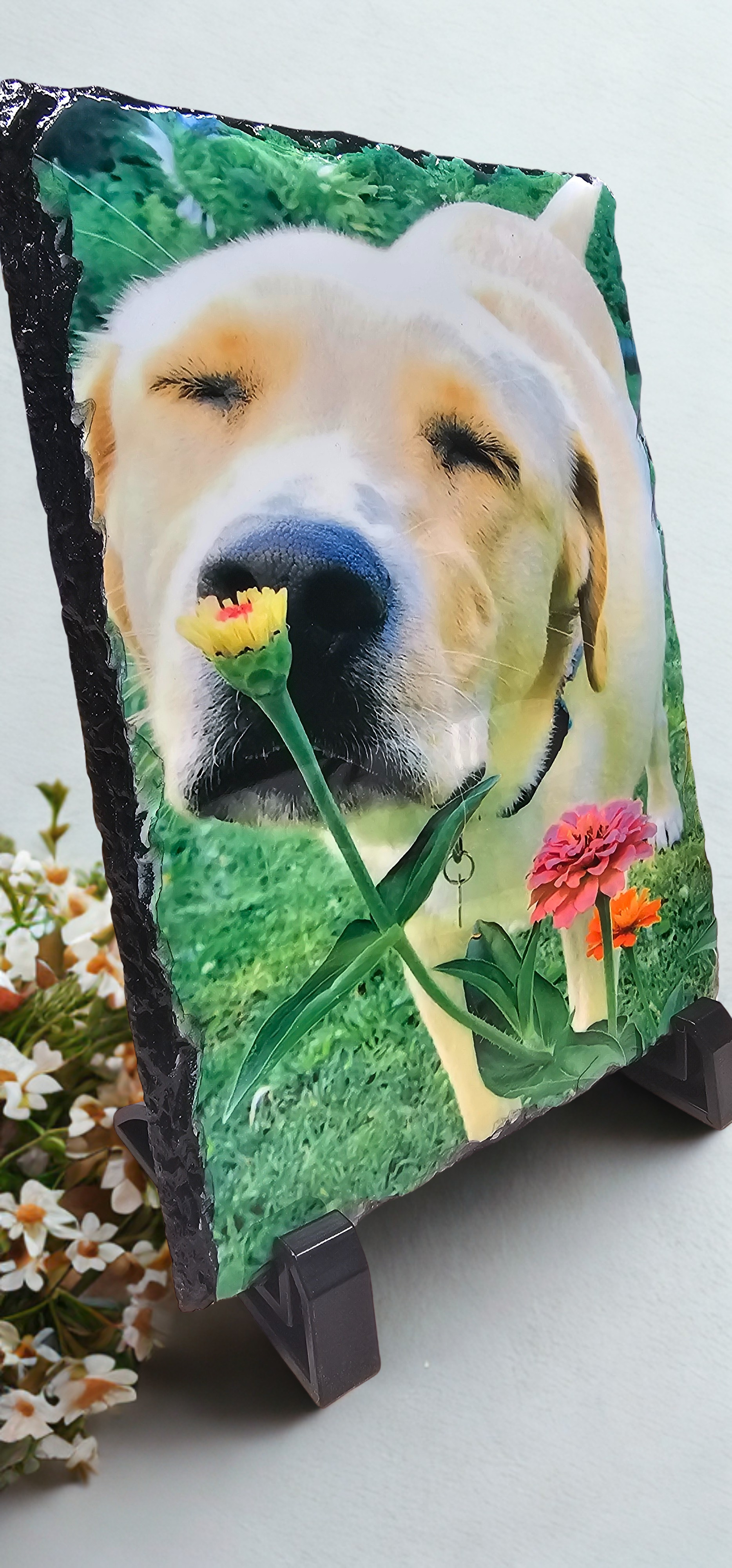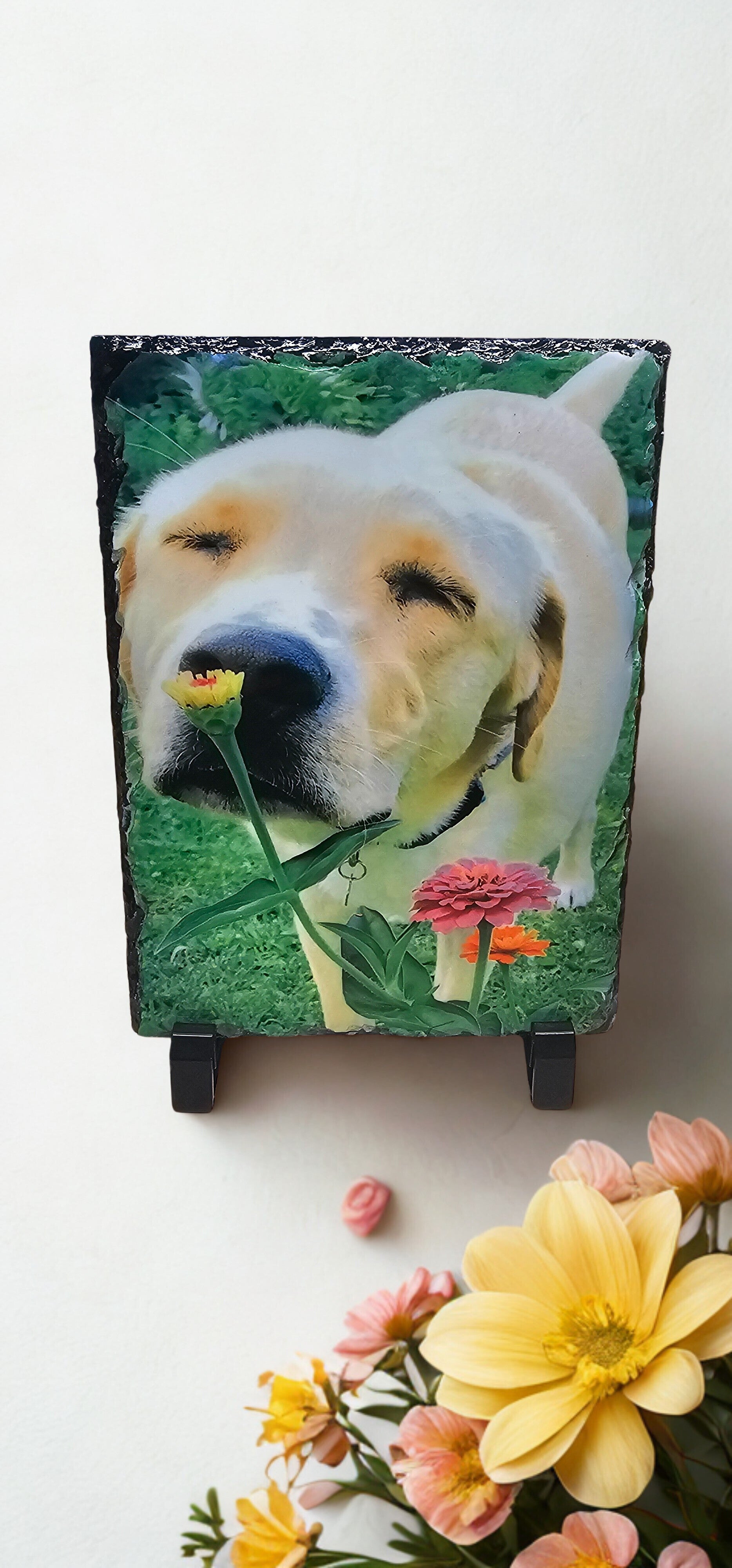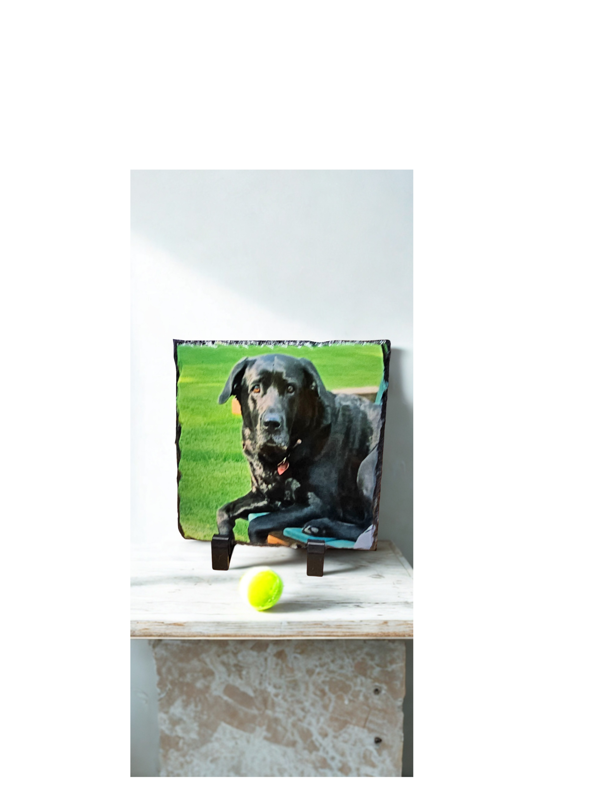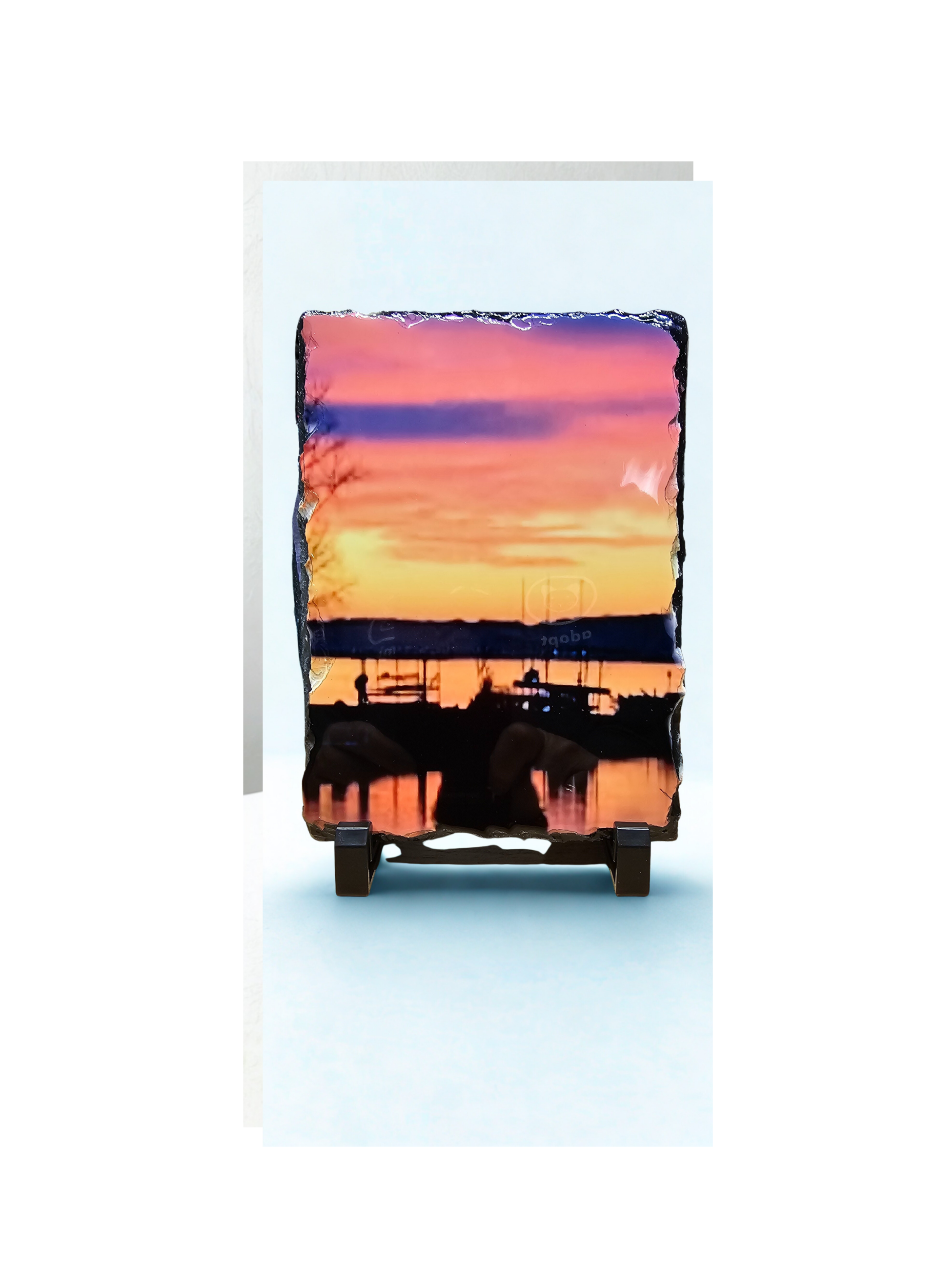 What better way to remember that special occasion or memory then a photo transfer on slate! Or even a custom designed award with a stand. After payment, email me your photo or award inscription and we can create and transfer through sublimination to slate rock.